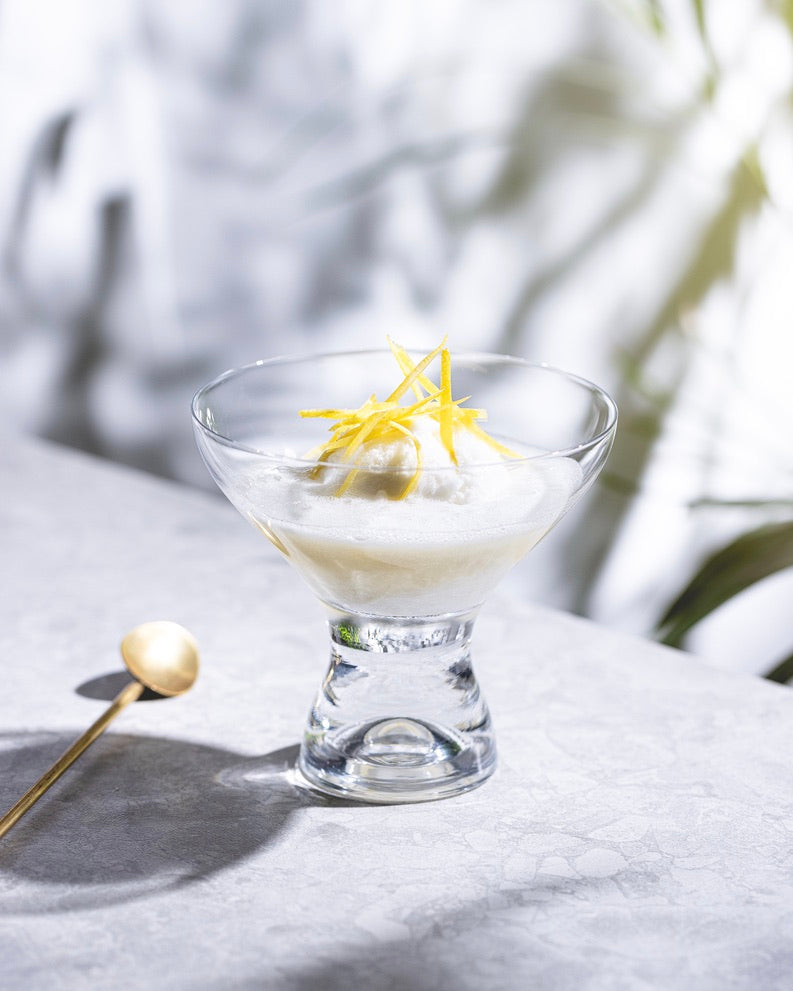 Add scoop of lemon sorbet to a chilled champagne saucer, then carefully pour over first the prosecco, then the Saicho Jasmine, add a little confit lemon peel on top of the sorbet and serve with a spoon.